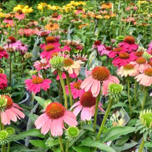 While sun loving perennials may not be front of mind at the moment with our current week of wet weather, once the clouds clear and summer returns the bees will be buzzing (literally) at the sight of these cone shaped beauties. The cone shaped flowers and bright colours make me think of a rainbow of pincushions. There's a big selection of colours and even some which change colour as they mature.