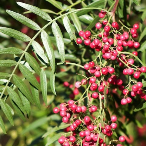 If purple leaves aren't your thing, then how about the Peppercorn tree, Schinus Molle? This is an excellent choice for large parks or play areas, in courtyards or along long broad driveways. The trunk will become gnarled and fabulously interesting with age. The foliage is bright green and comprised of many narrow leaflets. The flowers are insignificant but the papery pink to red berries are wonderfully ornamental in autumn and winter.